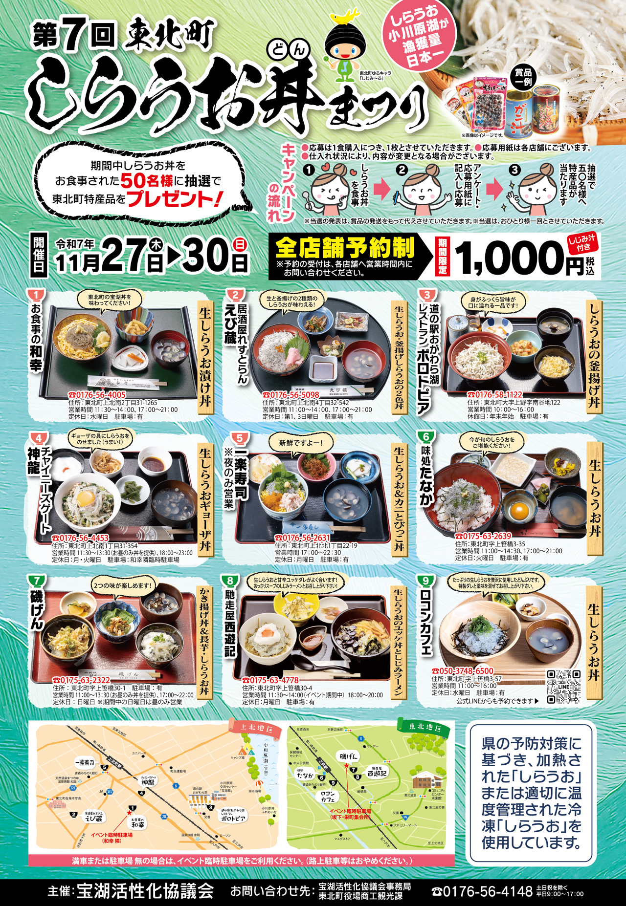 3.道の駅おがわら湖 レストランポロトピア「しらうおの釜揚げ丼」